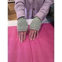 For sale is one pair of Fingerless Gloves handmade using Bambini 10 in colourway Fog Green. The blue pair, not for sale, was her first prototype using Peppin 8 in colourway Teal. How fun are they?