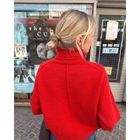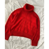 The red Scarlet Sweater is knitted in Double Sunday by Sandnes Garn in the color Scarlet red [4018].